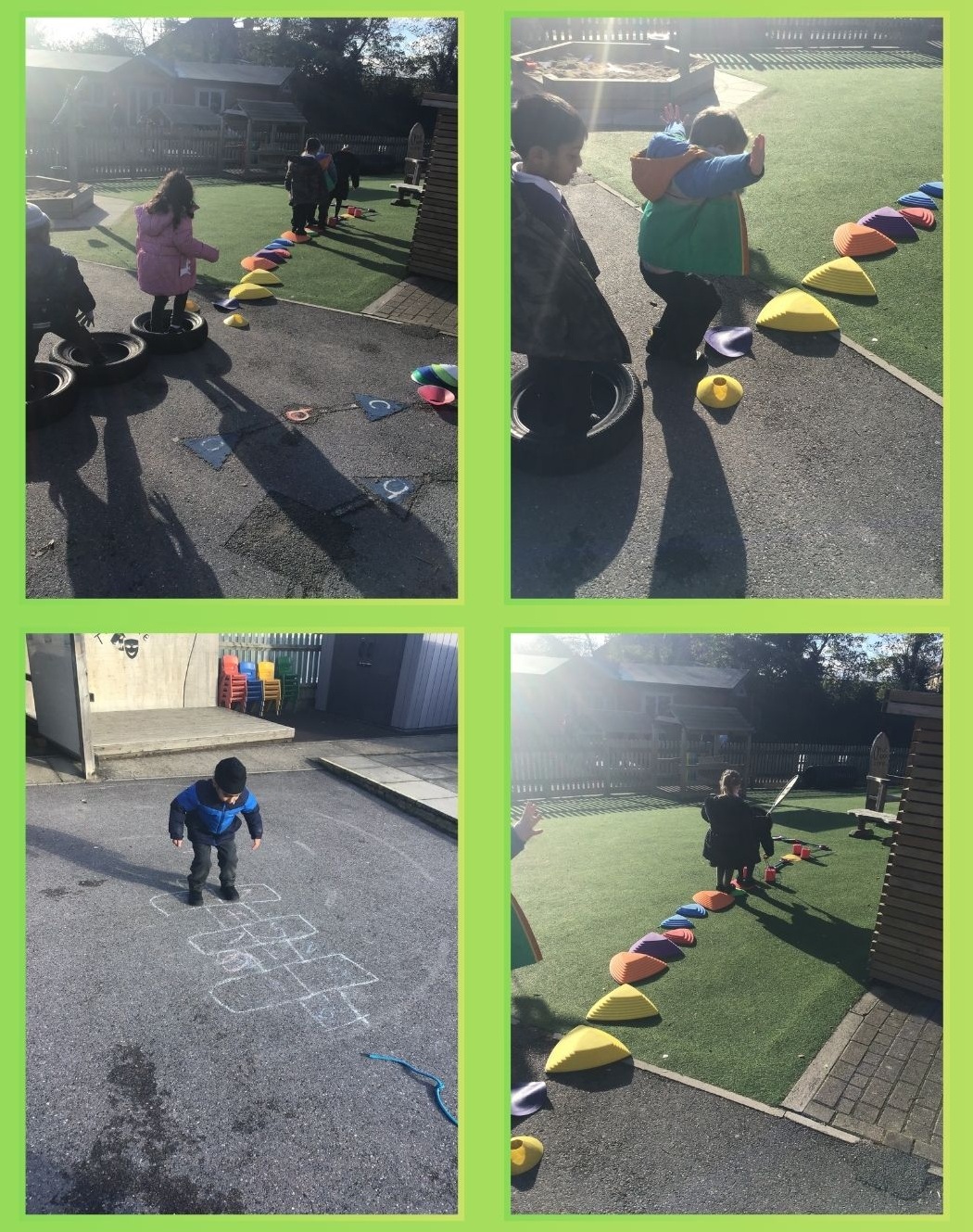 In the outside area, the children have been building obstacle courses. They have been using the large whiteboard outside to plan their course before using the construction and ‘huff and puff’ equipment to create them. They have thoroughly enjoyed timing each other and creating a leader board for the fastest children to complete their obstacle course.