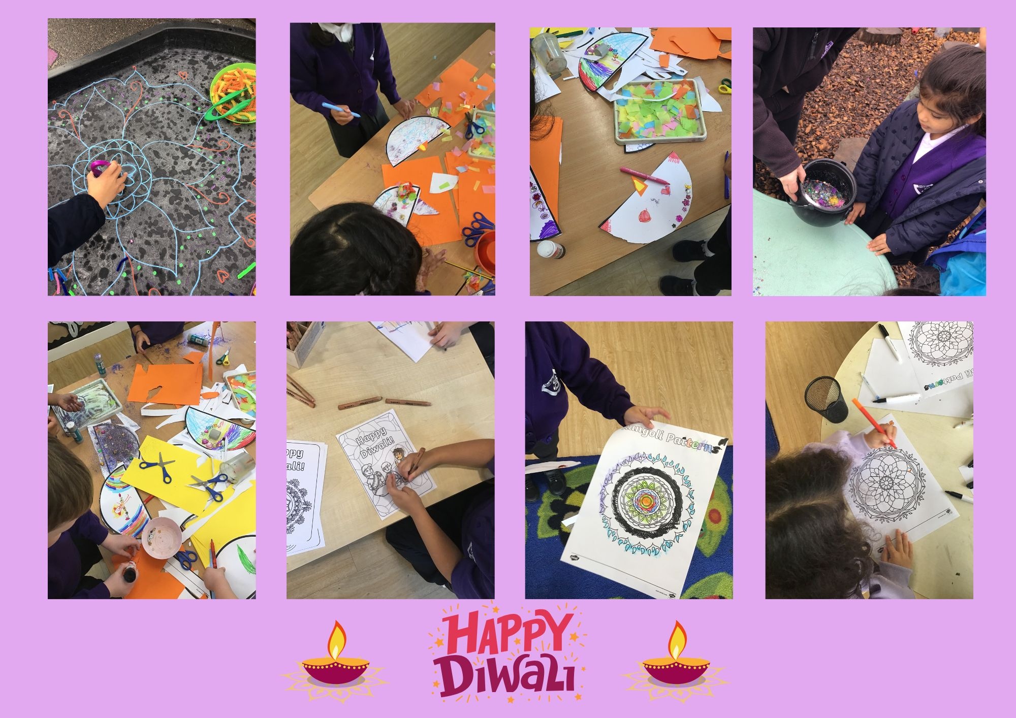 This week we have also been learning about the festival of Diwali. We learnt that it is celebrated all over the world and that it is known as 'The Festival of Light'. The children have thoroughly enjoyed learning about Diwali and have made their own Rangoli patterns with the loose parts, Mendhi patterns with powder paint and have used paper plates to make their own Diya lamps.