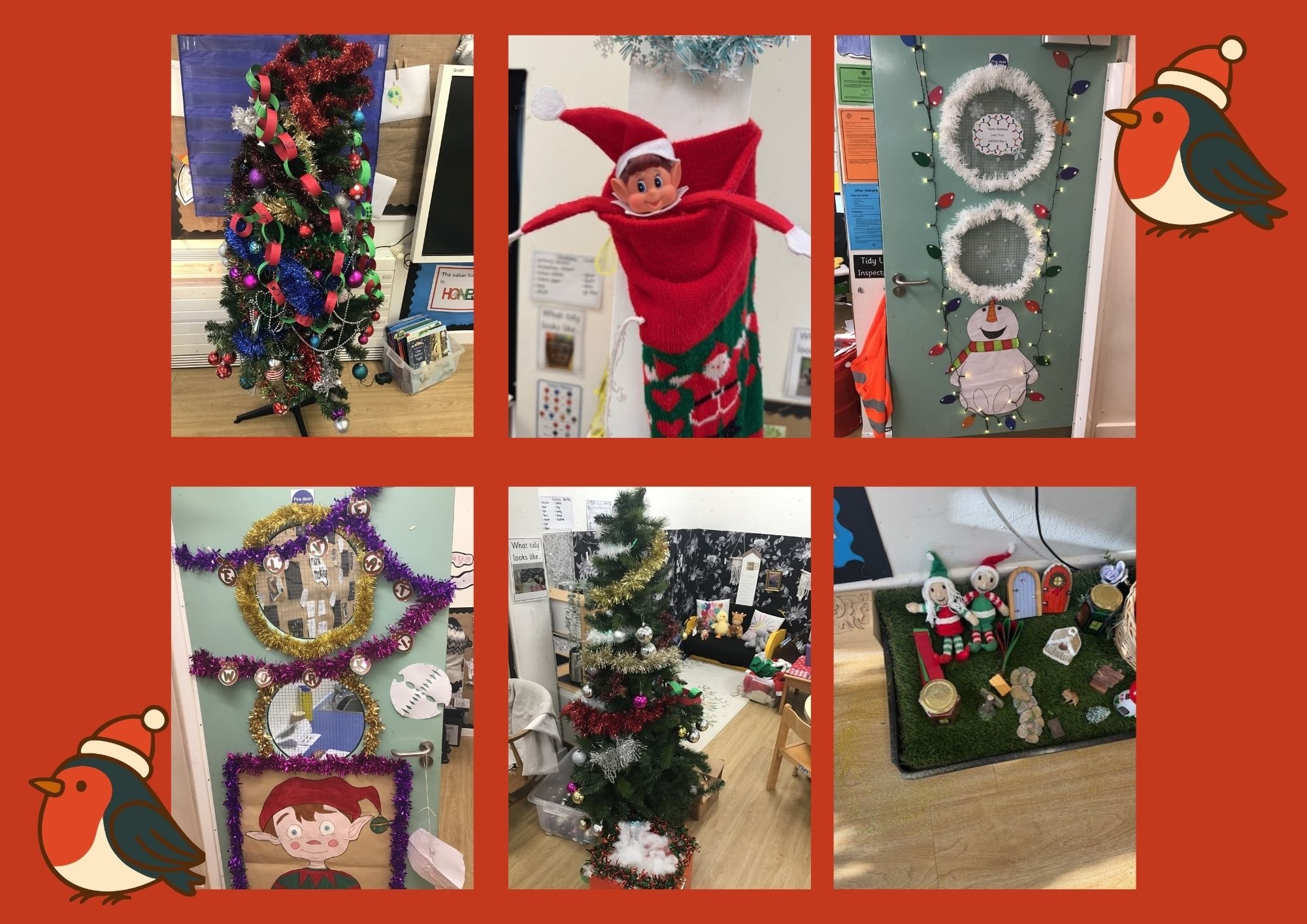 On Tuesday, we had a very exciting day! Father Christmas and our class Elves paid us a visit! They had decorated the classrooms, left us letters and even put an advent calendar up on the wall for us! The children loved seeing some Christmas characters on the doors, decorating the Christmas trees, and thoroughly enjoyed exploring a range of Christmas activities throughout the day! The Butterfly Class Elf is called Jingles and the Ladybird Class Elves are Olly and Ivy.